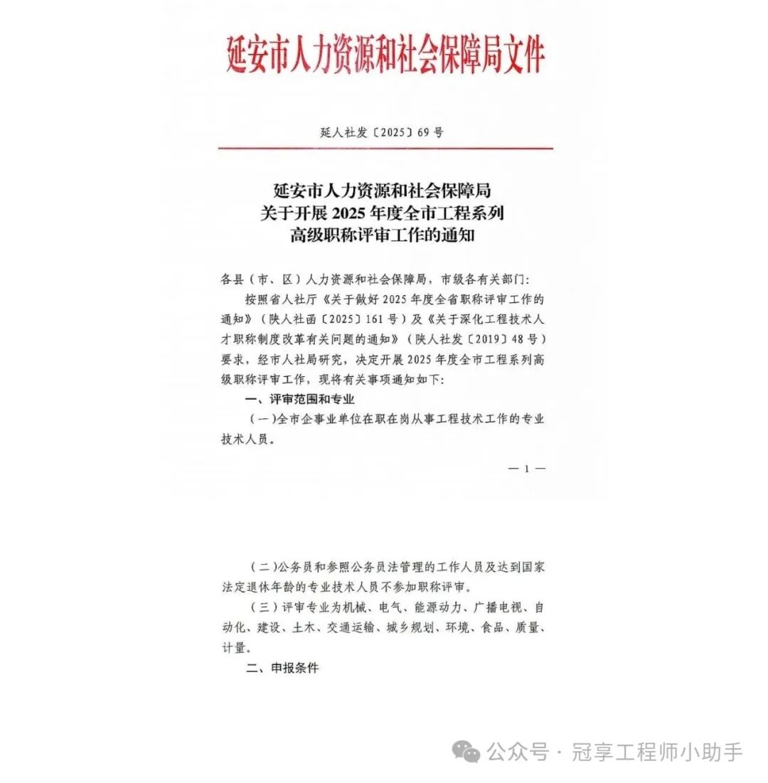 【高级工程师职称信息】2025年延安高级工程师职称评审开始啦